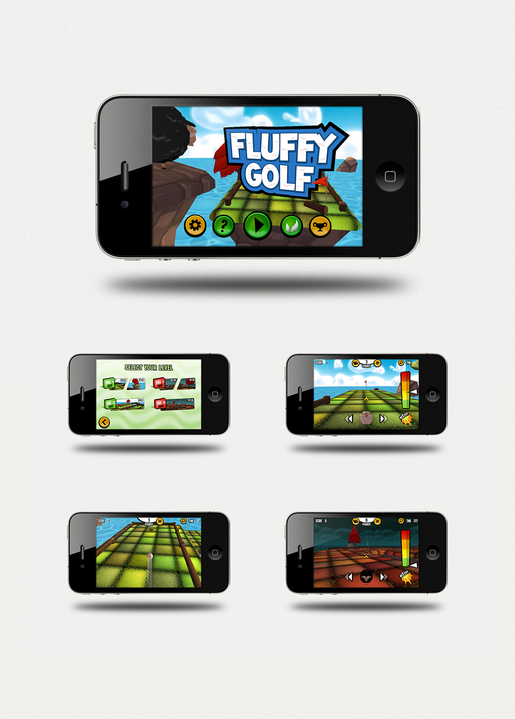 Participation à la conception du jeux mobile Fluffy Golf en passant par la création du logo, des icônes du jeu, d’une partie des textures, level design et modélisation des niveaux.